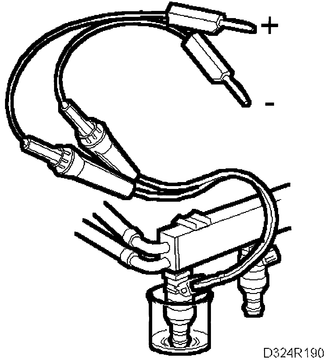 3 Place each injector in turn over a measuring glass and connect the injector to be checked to battery voltage using cables 86 11 410 and 86 11 345.