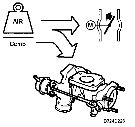 The throttle valve is rotated by a brushless throttle motor powered from control module pins 24 and 48 with 600 Hz PWM. The control module can rotate the throttle in both directions by reversing the polarity of the motor. The PWM ratio increases the further the throttle is from its desired value.