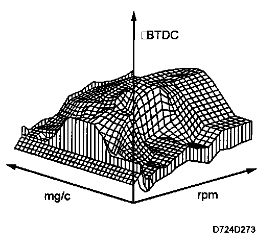 A matrix in the control module's memory contains the ignition timing data for each load and engine speed. The ignition timing is optimized for maximum torque at the engine speed concerned, which also coincides with highest efficiency and, accordingly, lowest fuel consumption.