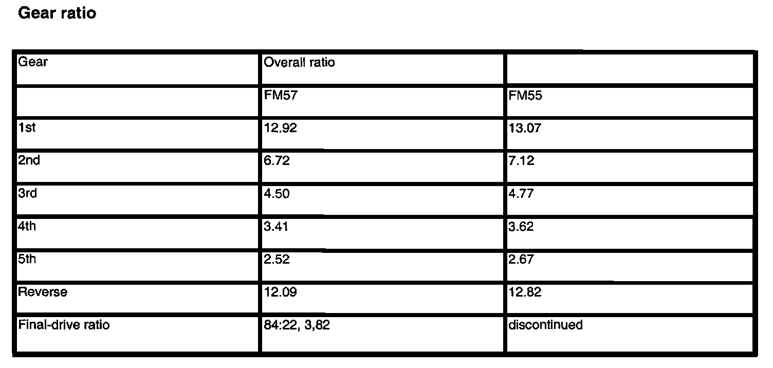 FM 55/57 5-spd M/T Technical Data: