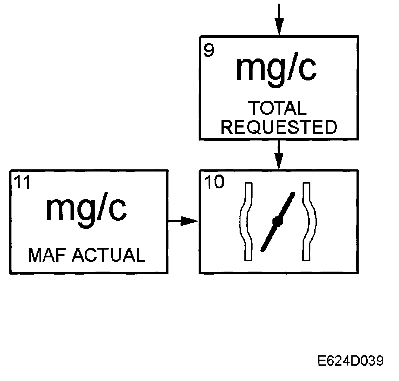 The control module calculates the air mass/combustion required for basic load, dashpot or idle speed control. The value is sent to box 8.