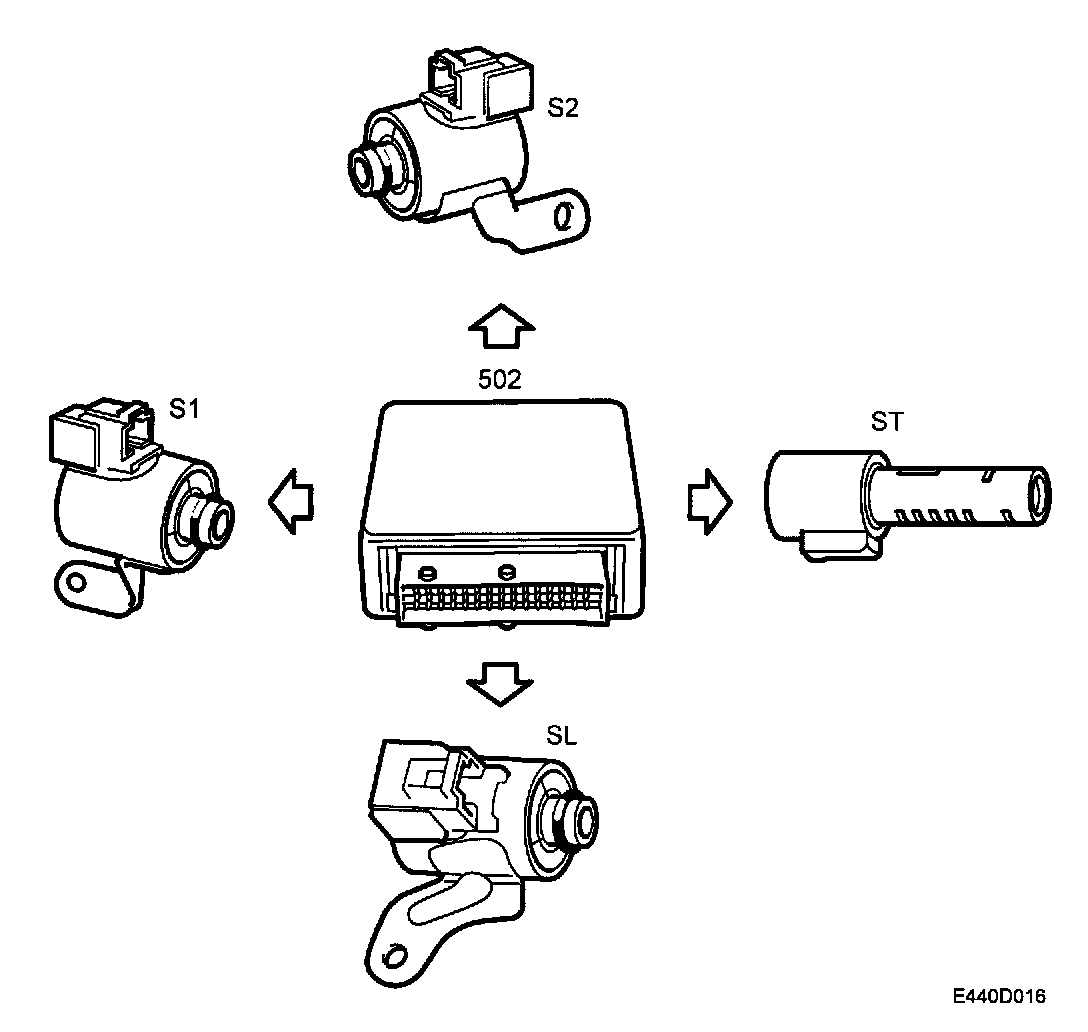 ^ Solenoid valve S2 for shifting, Solenoid Valves, S1 and S2, For Shifting