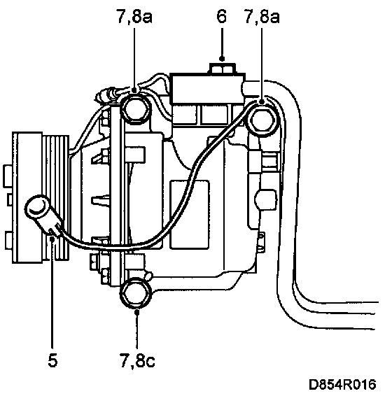 9 Vacuum pump the A/C system and fill refrigerant, see Refrigerant, A/C/Service and Repair.