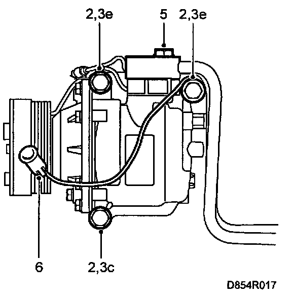 5 Screw the A/C pipes' PAD connection to the compressor.
