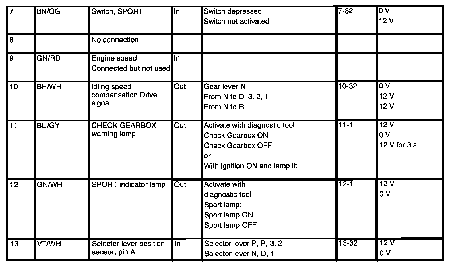 AF 20/22 4-spd, Control Module Readings Cont.: