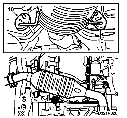 9 Undo the nuts holding the exhaust pipe up at the manifold.