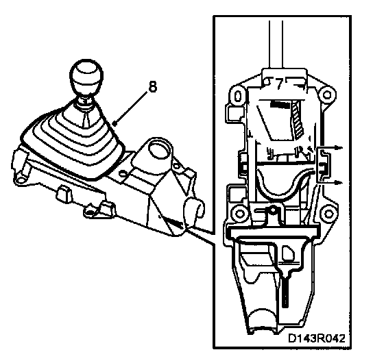 1. Remove the gear lever housing, refer to Transmission and Drivetrain, Manual Transmission/Transaxle.