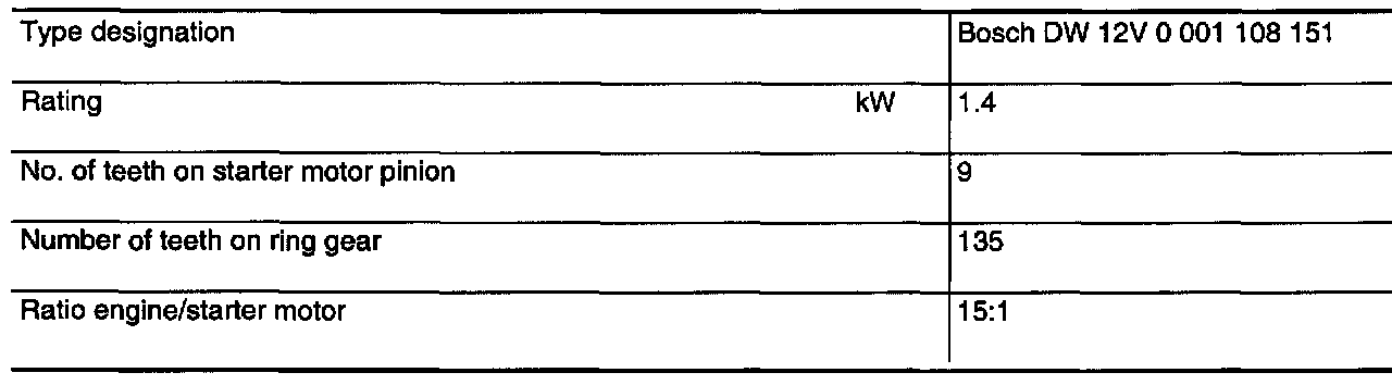 Starter Motor: Specifications