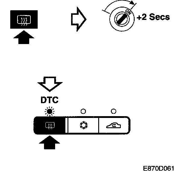 The control module is not connected to the bus and does not communicate with Tech 2. A stored diagnostic trouble code is flashed six times in succession by the LED for the electrically heated rear window if the button is depressed while turning on the ignition, and for a further 2 seconds after that.