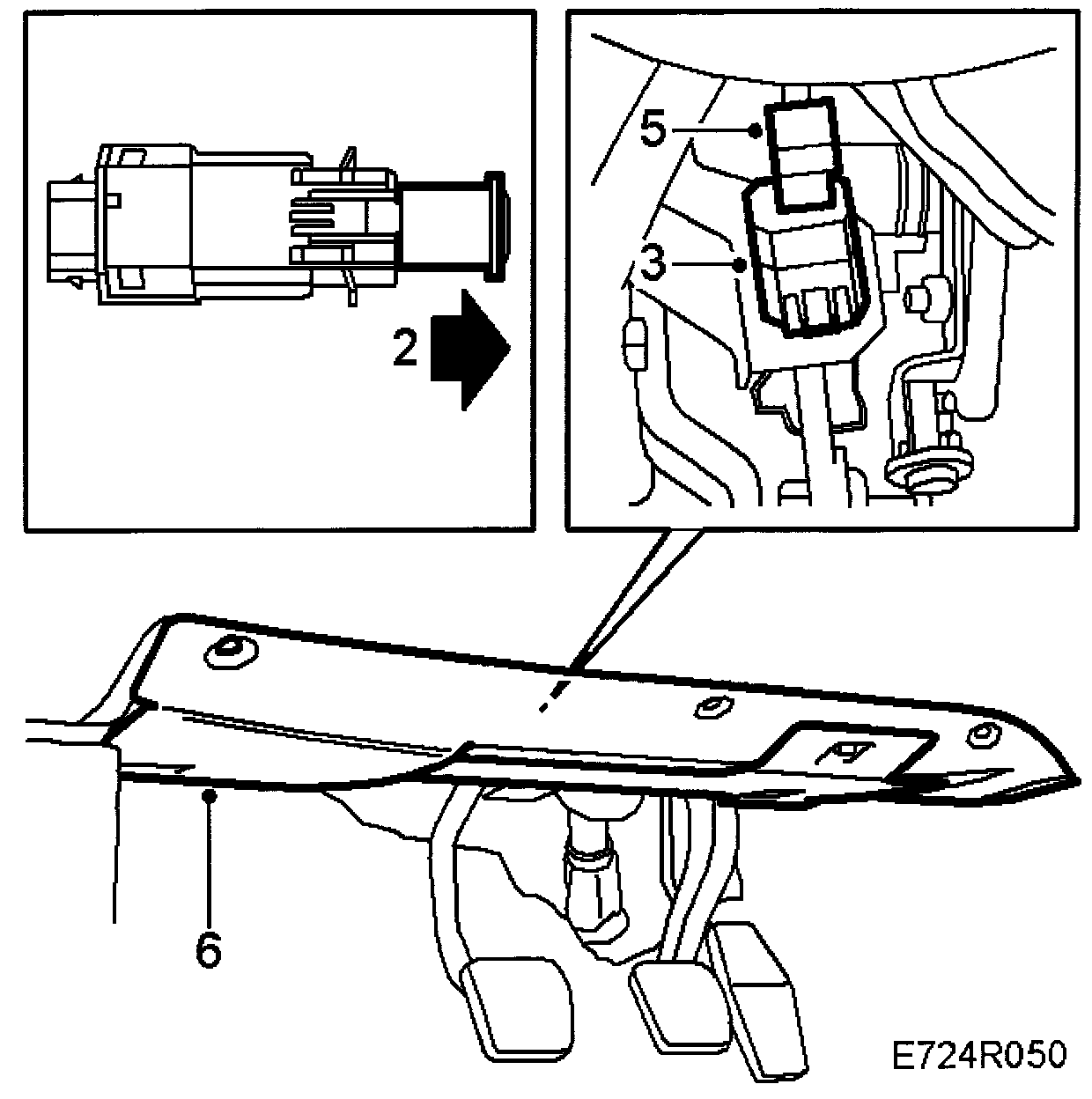 3 Depress the clutch pedal and press the switch into the holder.