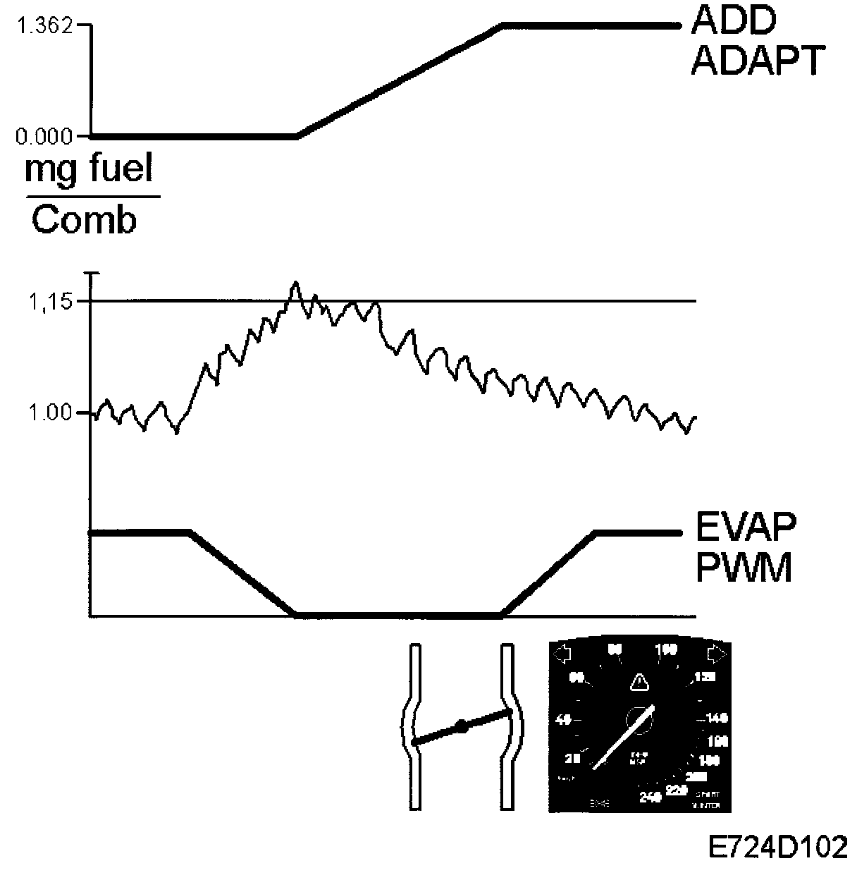 The fuel quantity is added or subtracted until the closed loop value fluctuates around 1.00 (0%). The reason additive adaptation is required, is that when air leaks occur at idling speed they can lead to a major fault that must not be adapted multiplicatively, because the fuel quantity would then be too great as soon as the load is raised.
