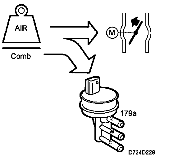 The value of the atmospheric absolute air pressure and the temperature of the intake air are used to correct the conversion. At low atmospheric pressures or when the intake air temperature is high, a greater PWM ratio is required to obtain the same air mass/combustion.