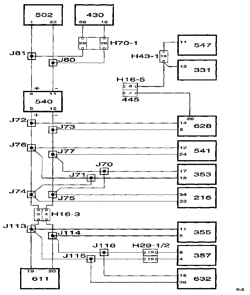 The buses are divided into the Powertrain bus (P bus) and the Instrument bus (I bus). Both buses are connected to the main instrument unit (MIU). The buses are electrically isolated from each other.