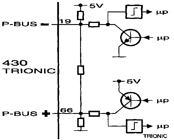 Information transfer between control modules takes place via two leads, BUS+ (green led) and BUS(white lead). On the P bus, the two leads are twisted to reduce sensitivity to electrical interference.