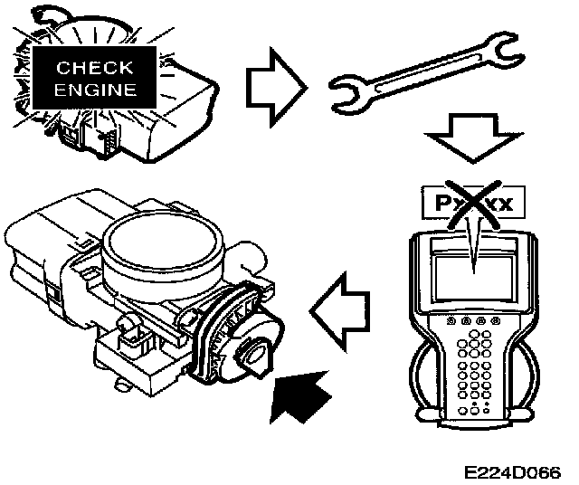 If a safety-related fault occurs in the throttle control system, the throttle will go into limp-home mode. The CHECK ENGINE lamp then comes on immediately and the diagnostic trouble code must be cleared with the diagnostic tool.
