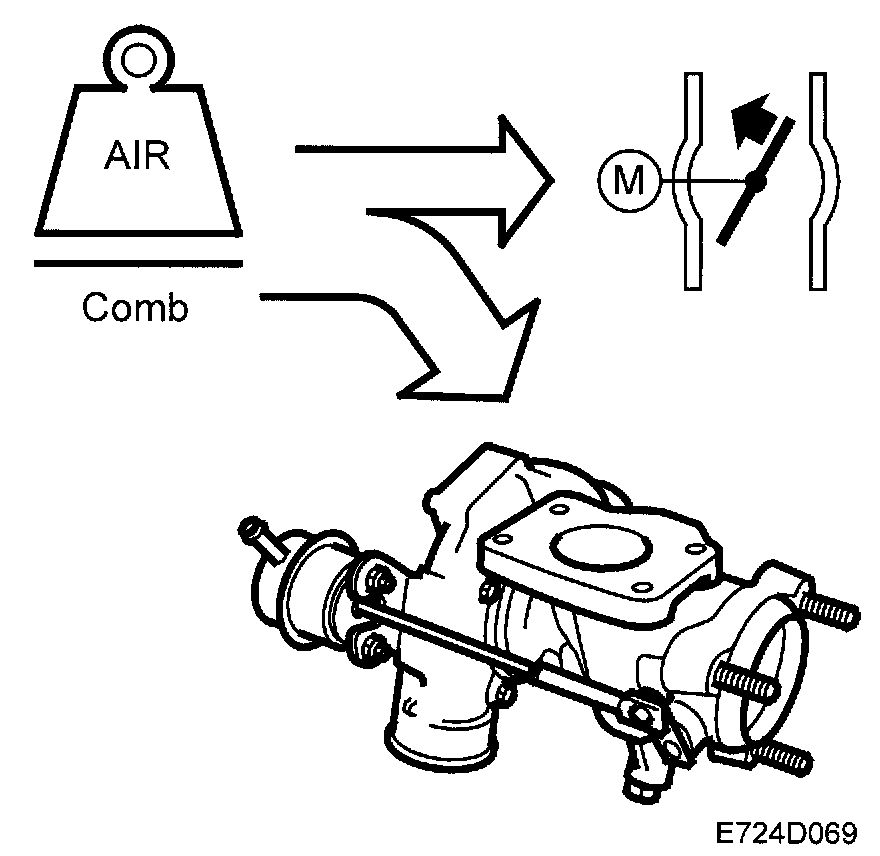 The mass air flow control system requests a certain mass air flow/combustion. The throttle control converts this value into a requested value for throttle position sensor 1 and compares this with the sensors current value.