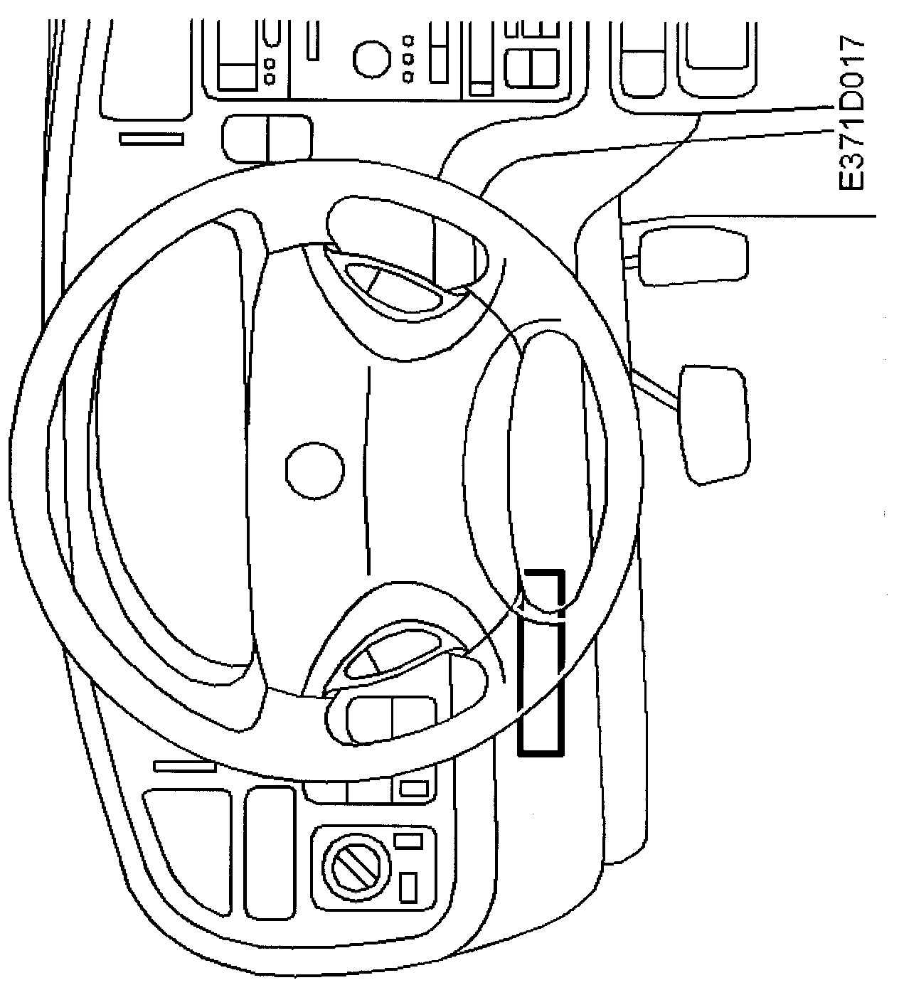 Beneath the dashboard by the steering wheel