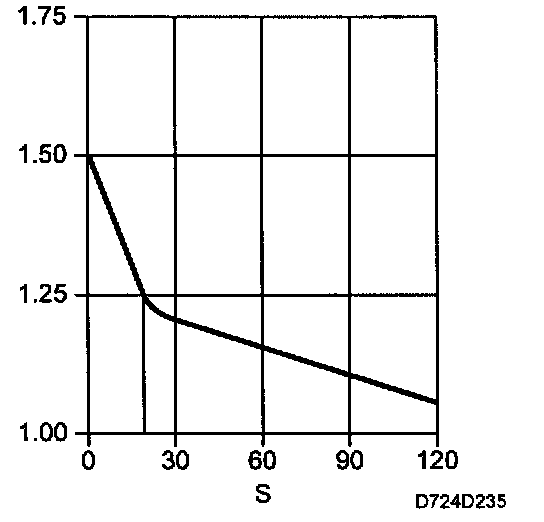 As soon as the load increase stops, the correction factor returns to its original value.