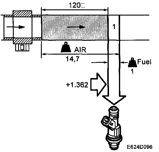 The fuel quantity is added or subtracted until the closed loop value fluctuates around 1.00 (0%). The reason additive adaptation is required, is that when air leakage occurs on idling it can lead to a major fault that must not be adapted multiplicatively, because the fuel quantity would then be too great as soon as the load is increased.