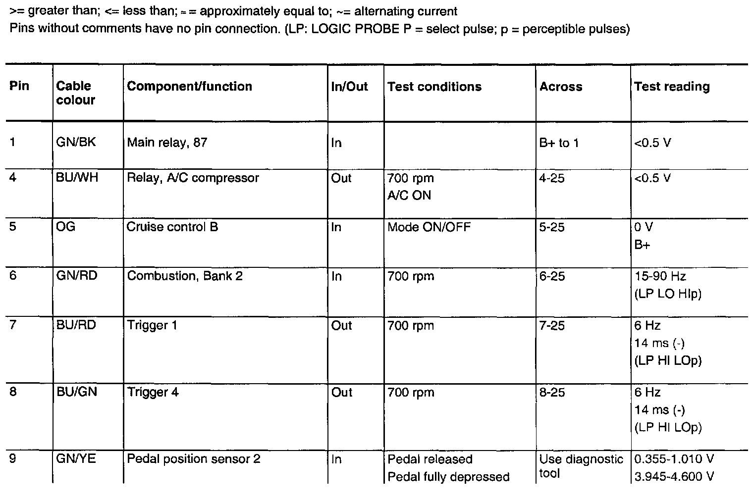 The following pages contain readings and instructions for measuring signals and levels on the Trionic control module.