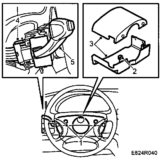 1 Turn the steering wheel and remove the two screws securing the steering column cover.