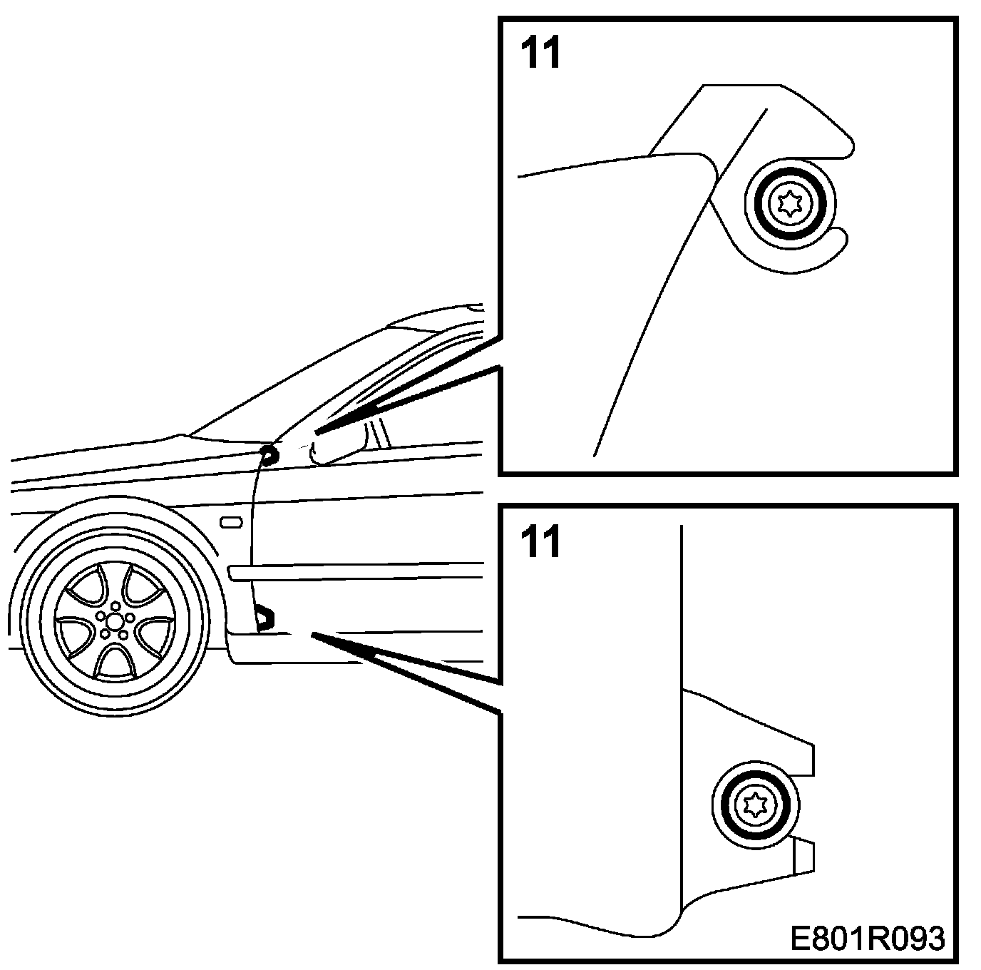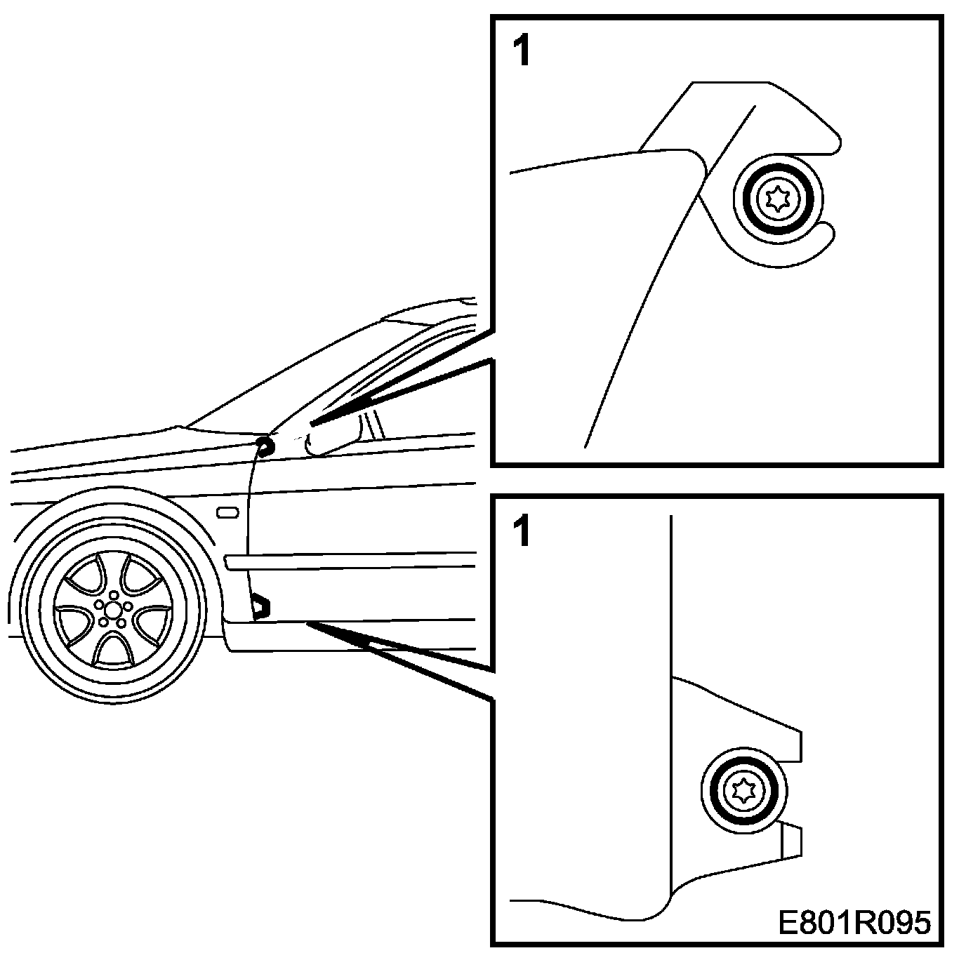 1. Push the wing lugs into position behind the screws in the A-pillar while pulling out the scuff plate.