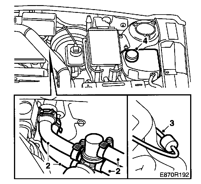 2 Clamp together the coolant hoses with a pair of pliers (part no.30 05 758).