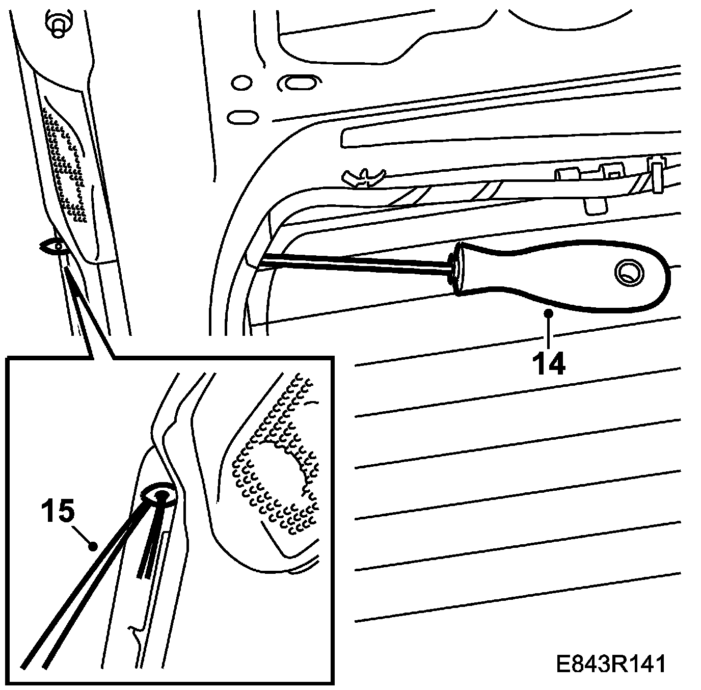 5. Remove the frame round the inner tailgate handle by prying it up with a screwdriver in the three recesses. When the frame's clips have released, pull the frame downwards and bend it out.