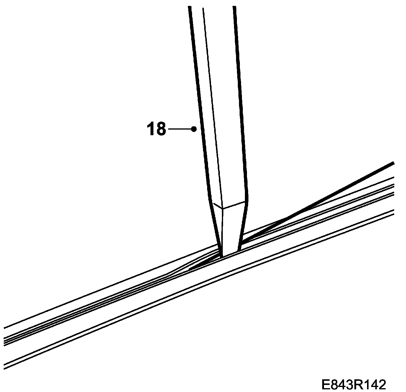 1. Cut down the bead of adhesive on the tailgate window to a height of no more than 2 mm. Use the cutting tool from the removal kit. If the old window is to be put back into place, the bead of adhesive on the window should also be cut to max. 2 mm. Old, well-bonded adhesive is a good foundation for the new bead. Remove any loose adhesive from the glass and metal.