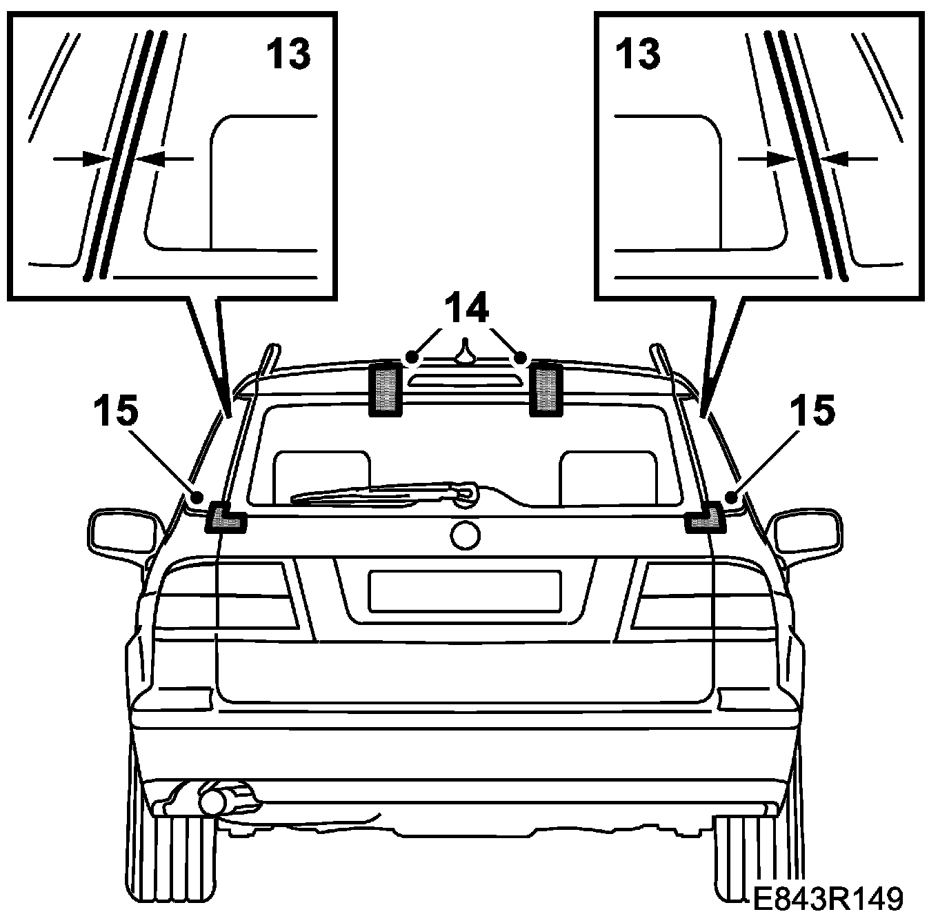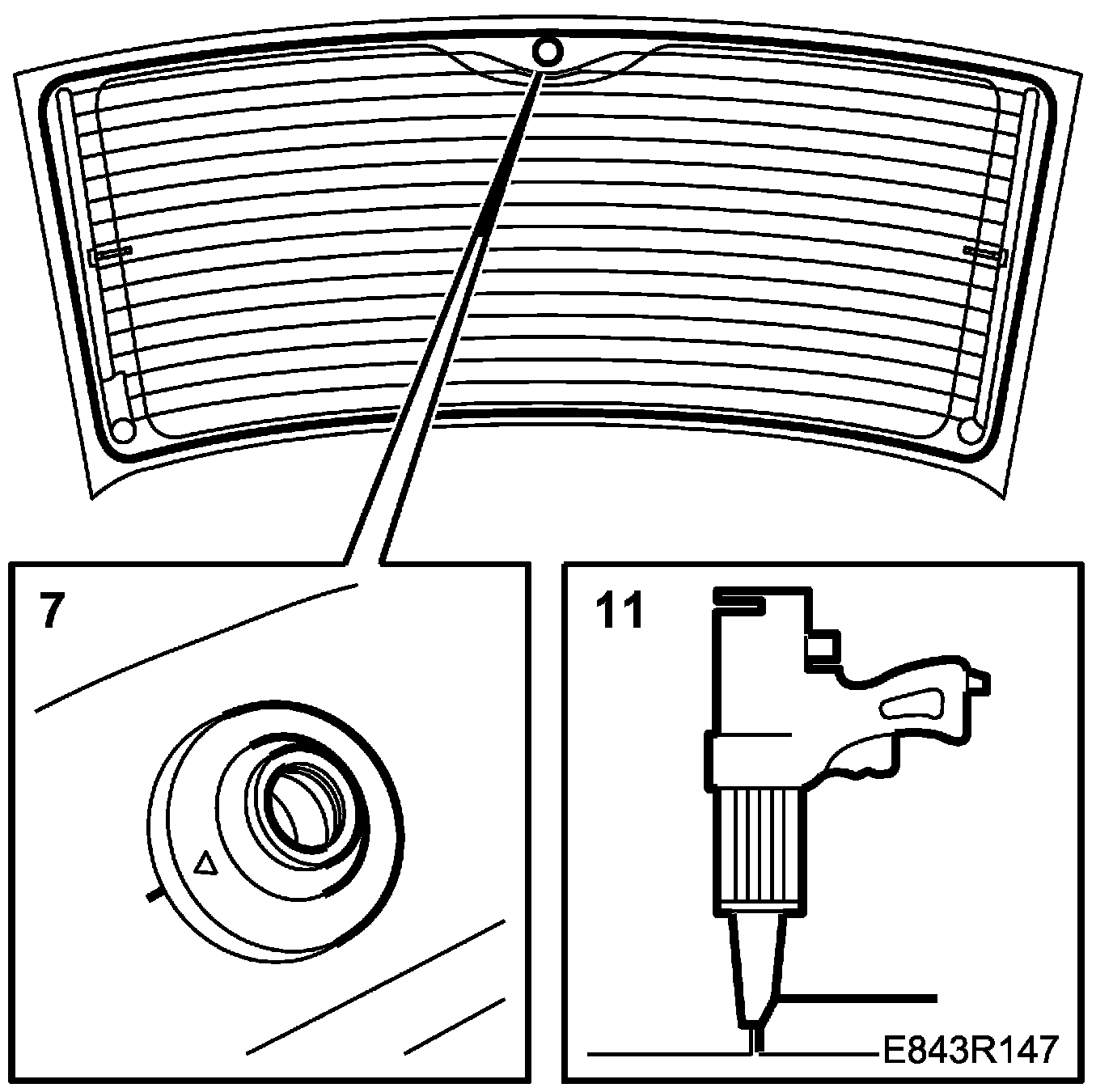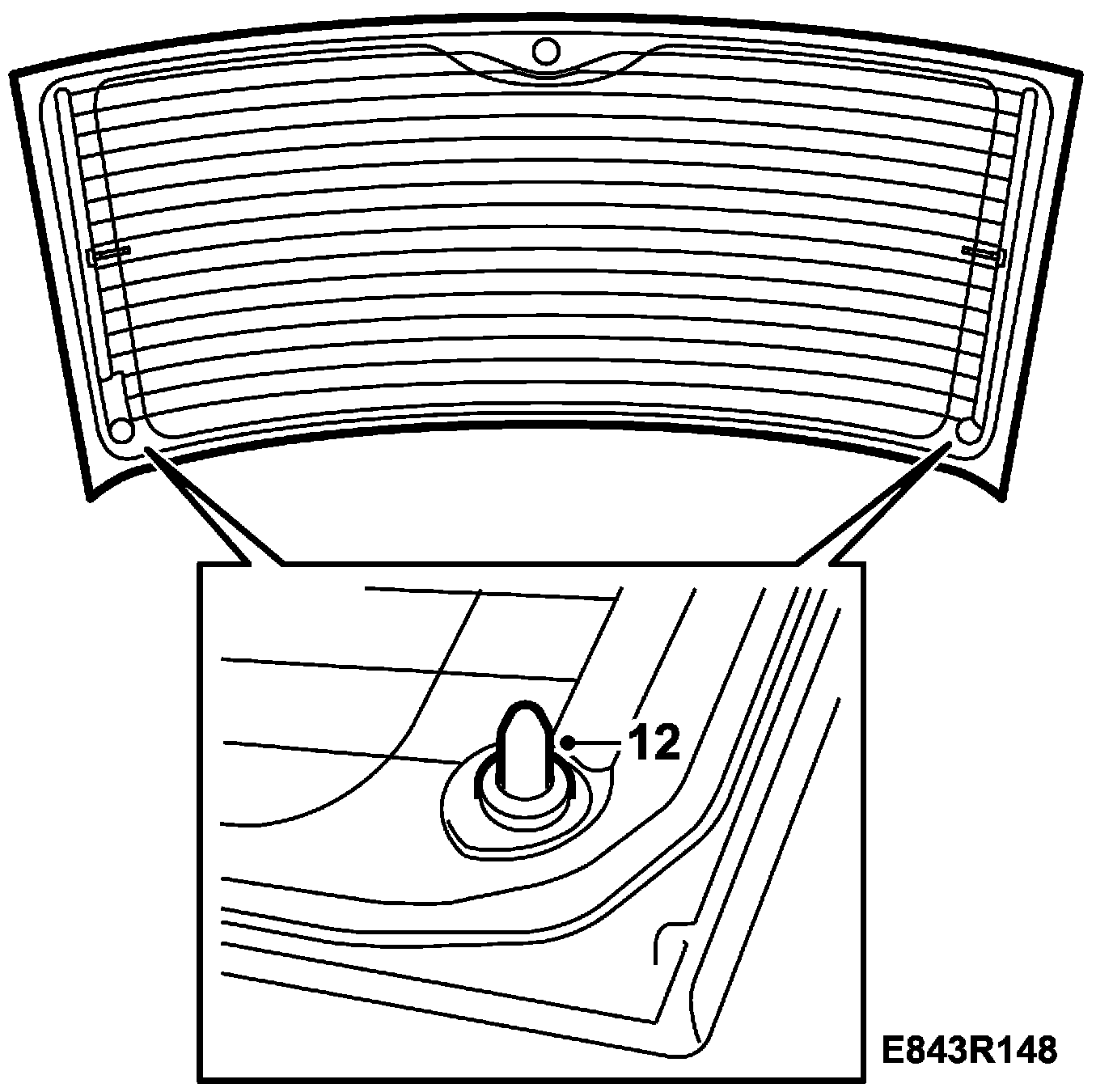 NOTE: If the rear window is to be secured with tape after being fitted, make sure the upper part of the tailgate has been cleaned before starting to fit the rear window.