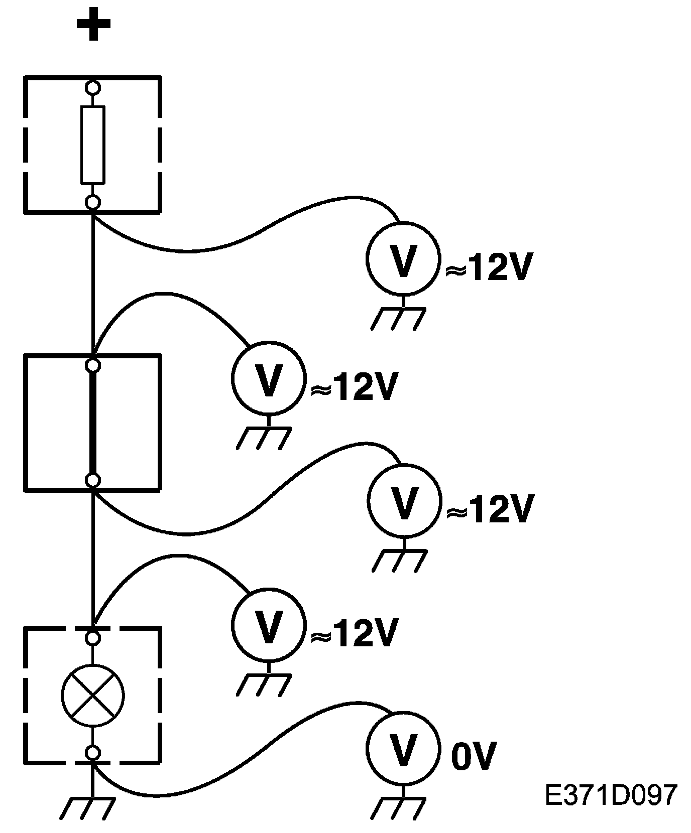3. Connect one test lead to a good ground and the other to the point to be tested.