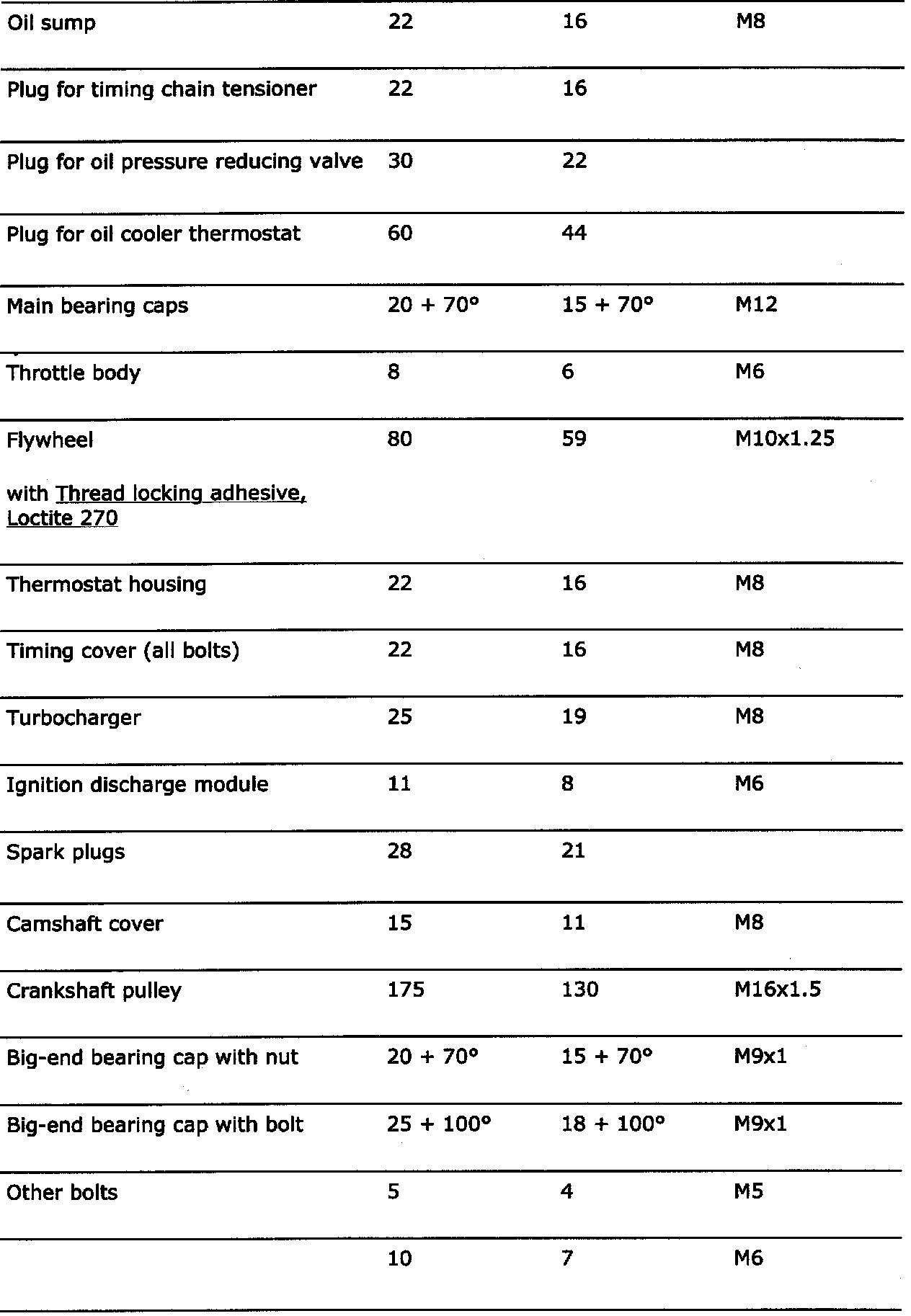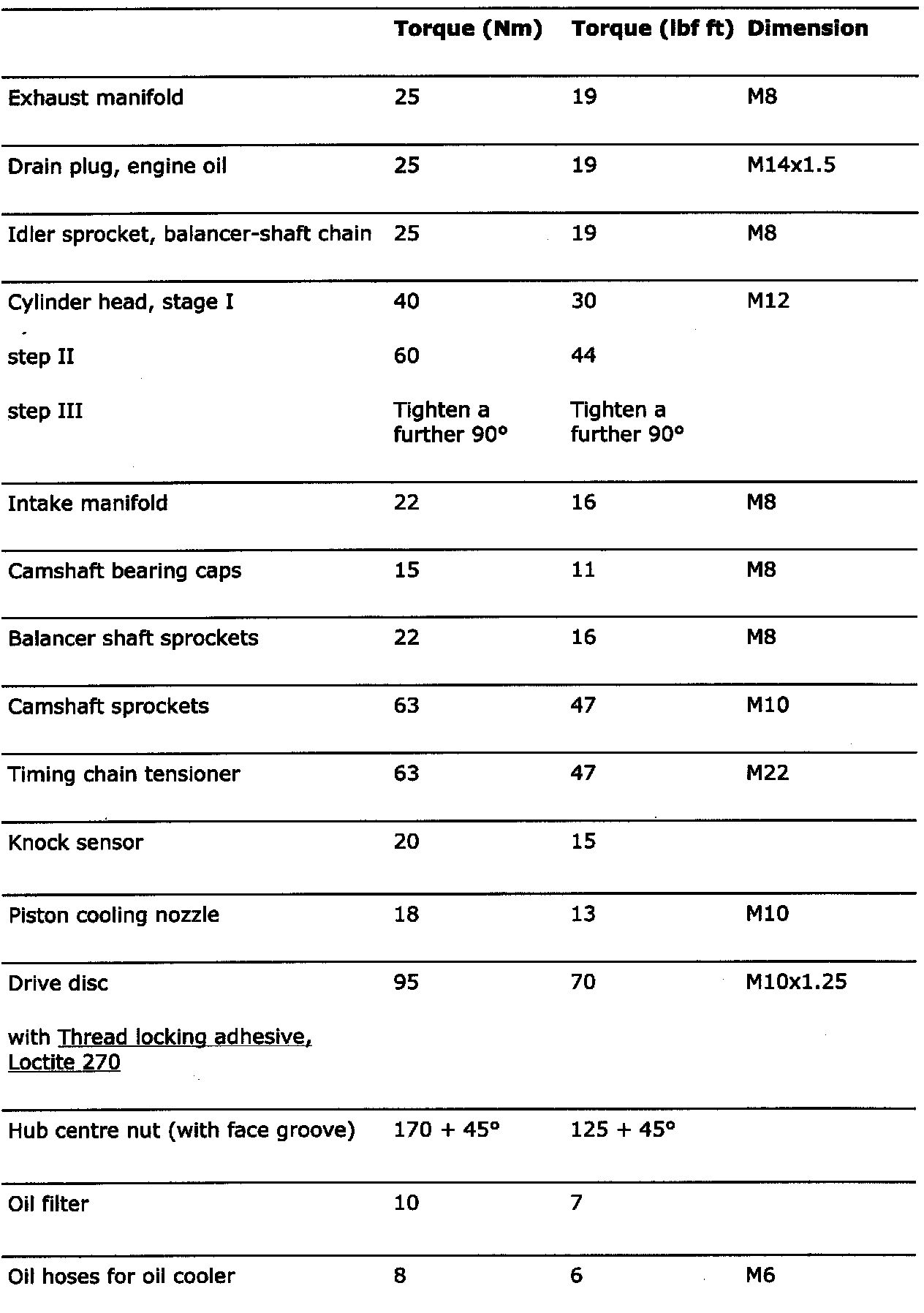 Torque Specifications