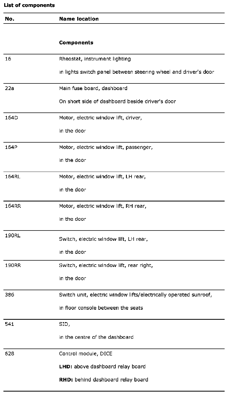 List Of Components (Part 2):