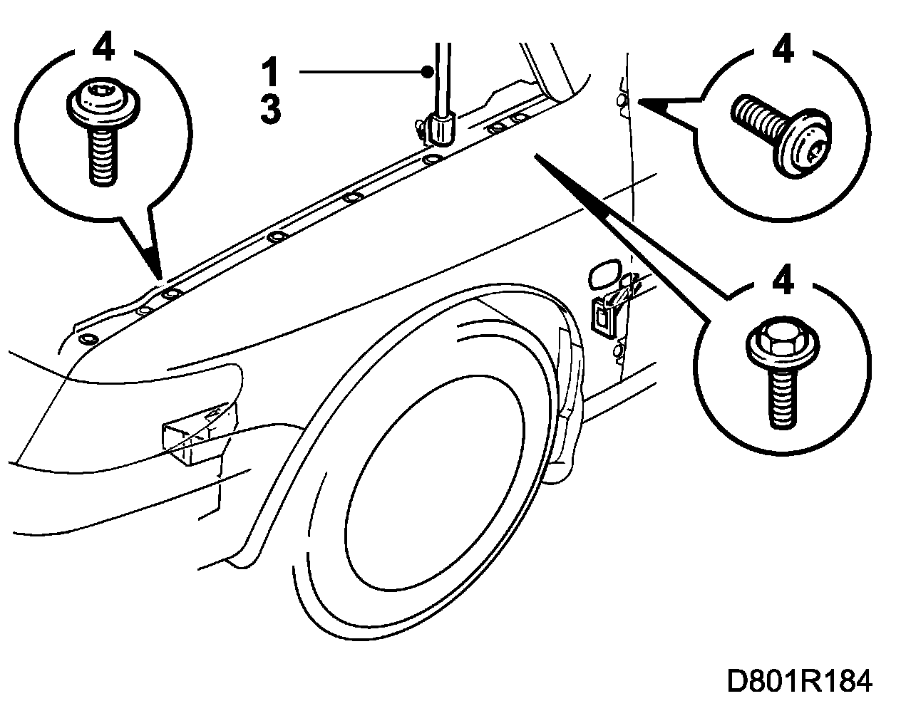 NOTE: For the left wing, the retaining screw holding the washer fluid filler pipe must also be removed.