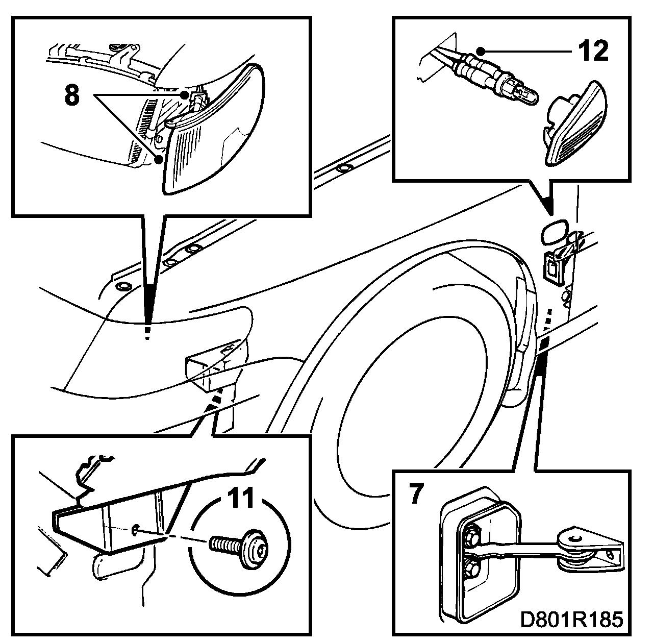 NOTE: When replacing the wing, transfer the side direction indicators and decor strip to the new wing.