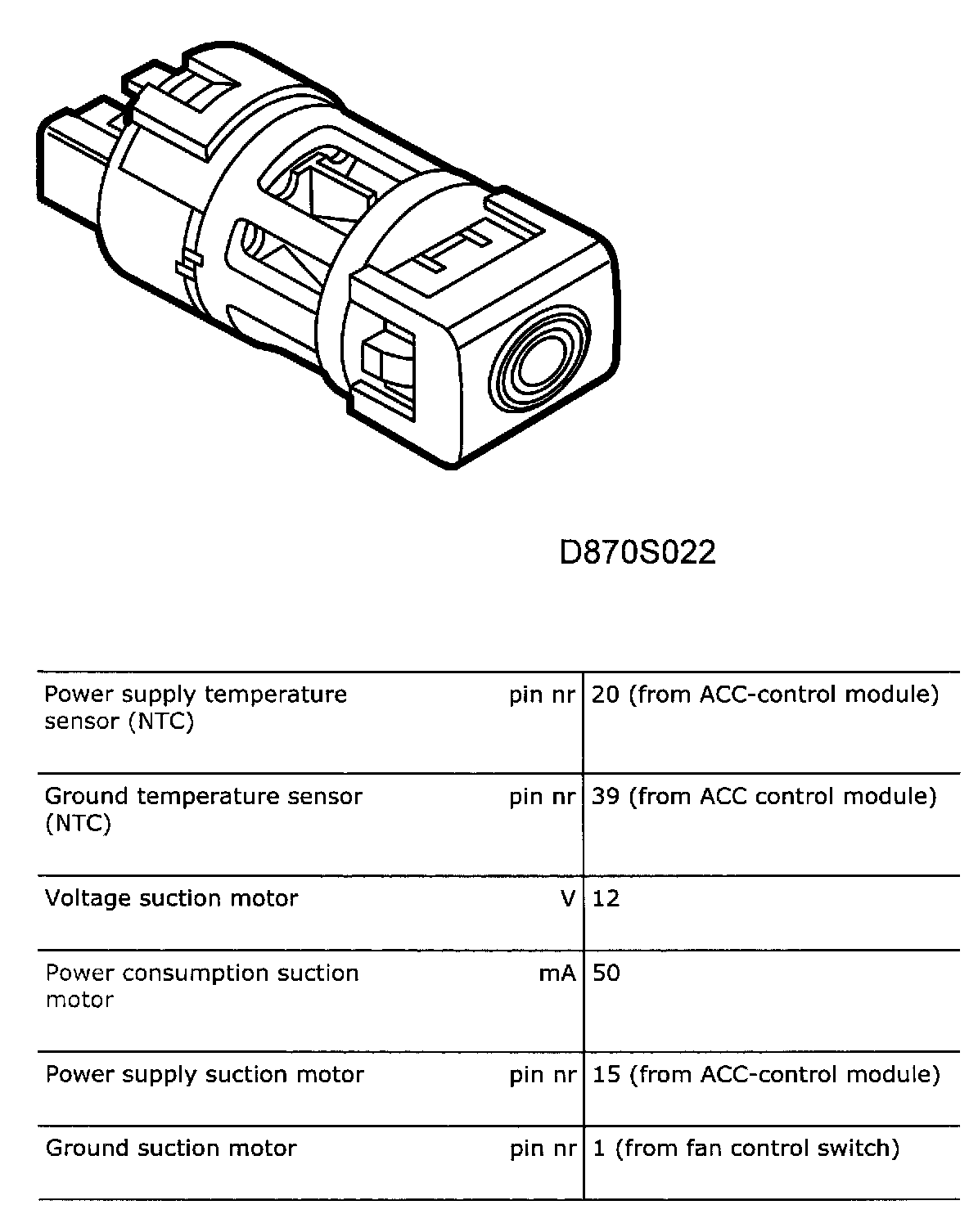 Cabin Temperature Sensor / Switch: Specifications