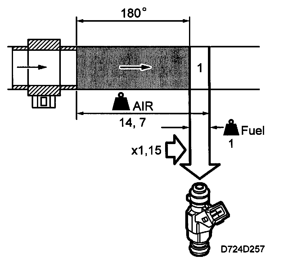The fuel quantity is always multiplied by a multiplicative adaptation factor that is 1.00 when the control module is new or has been de-energized. The multiplicative adaptation takes place during partial load. Purging is interrupted during adaptation as no other sources affecting the fuel may be present.