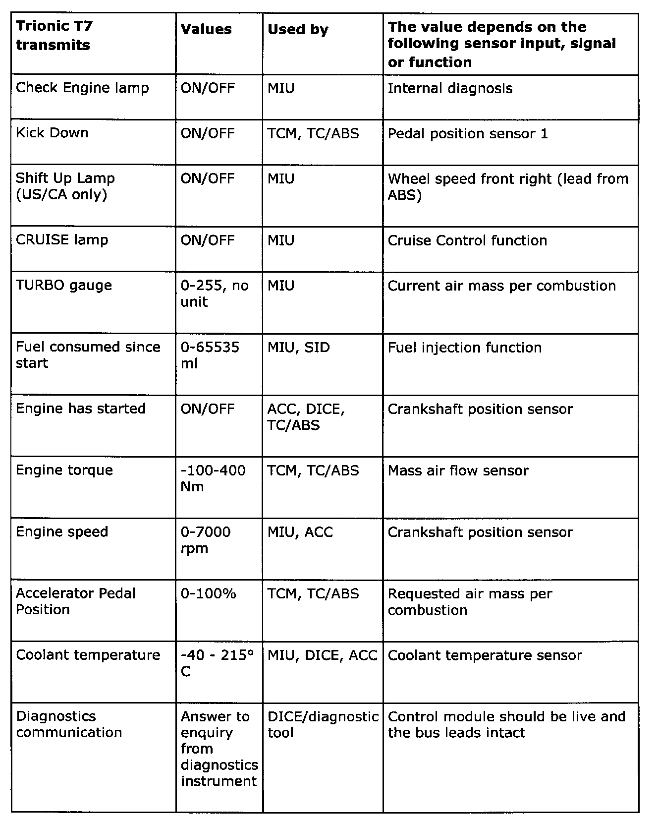 TCM (cars with Trionic T7 engine management system)
