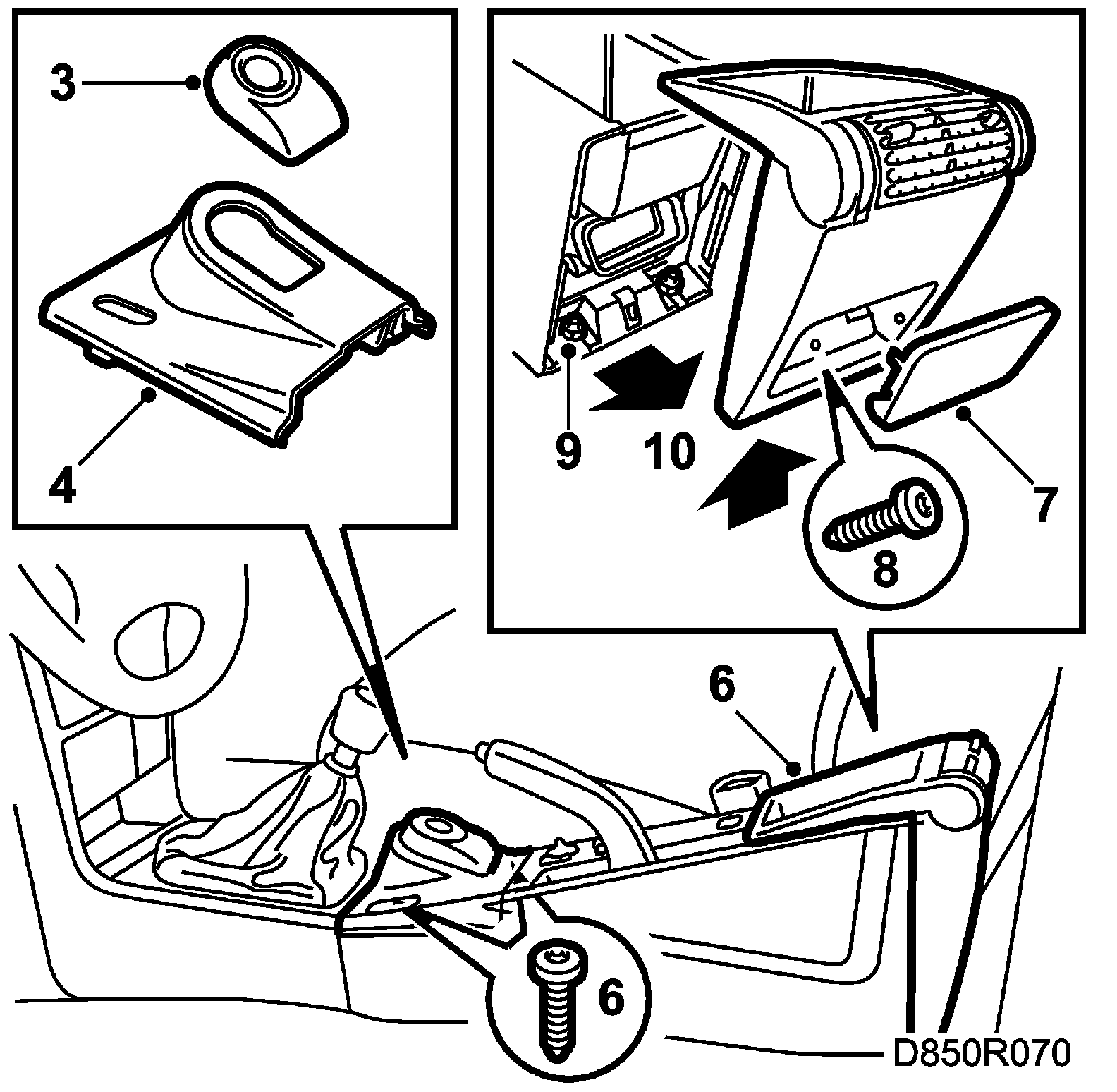 6. Undo the retaining screws of the floor console.