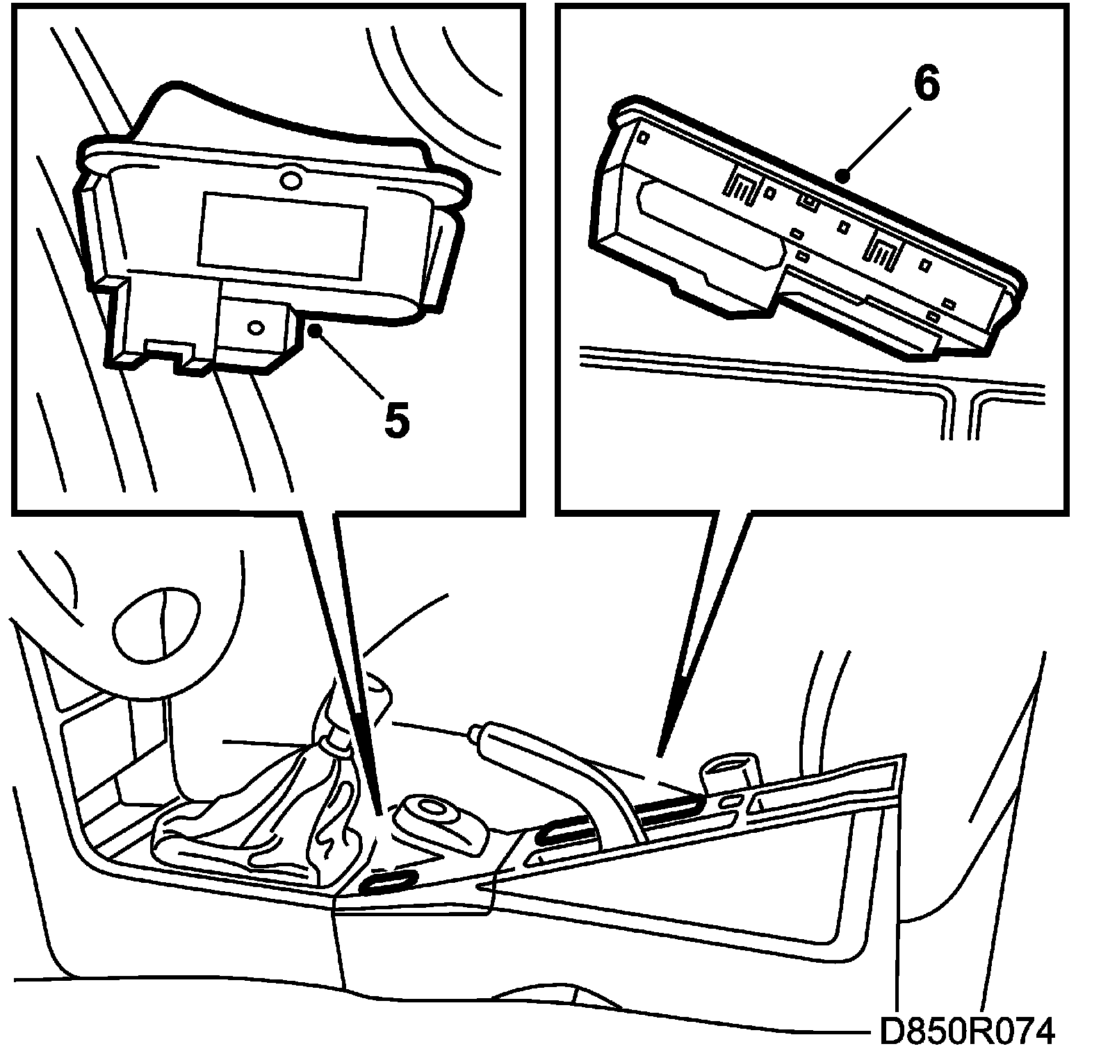 13. Detach the switch of the dome lighting and unplug its connector (convertible). Lift the floor console clear.