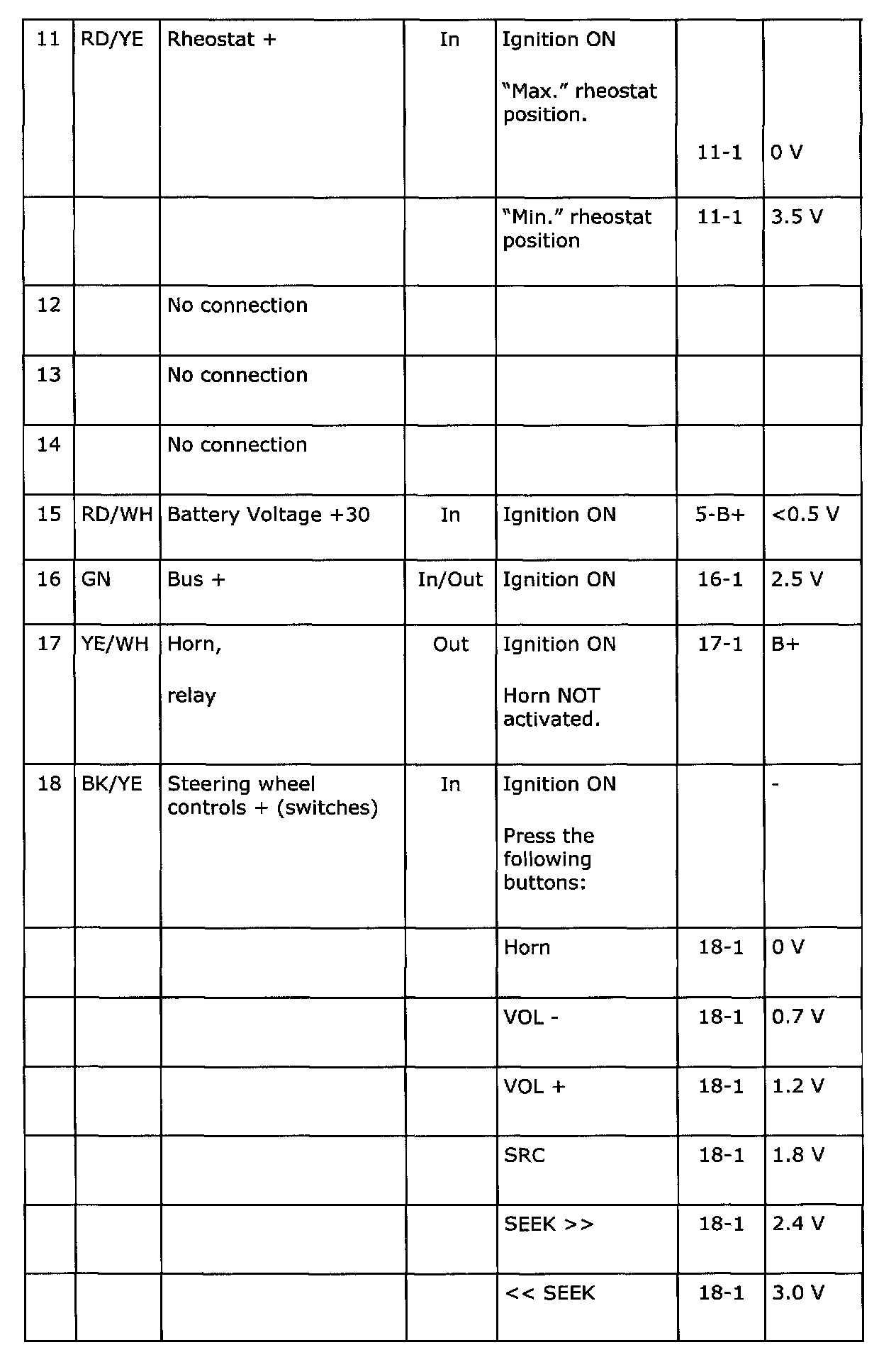 Pin No 11 - 18: