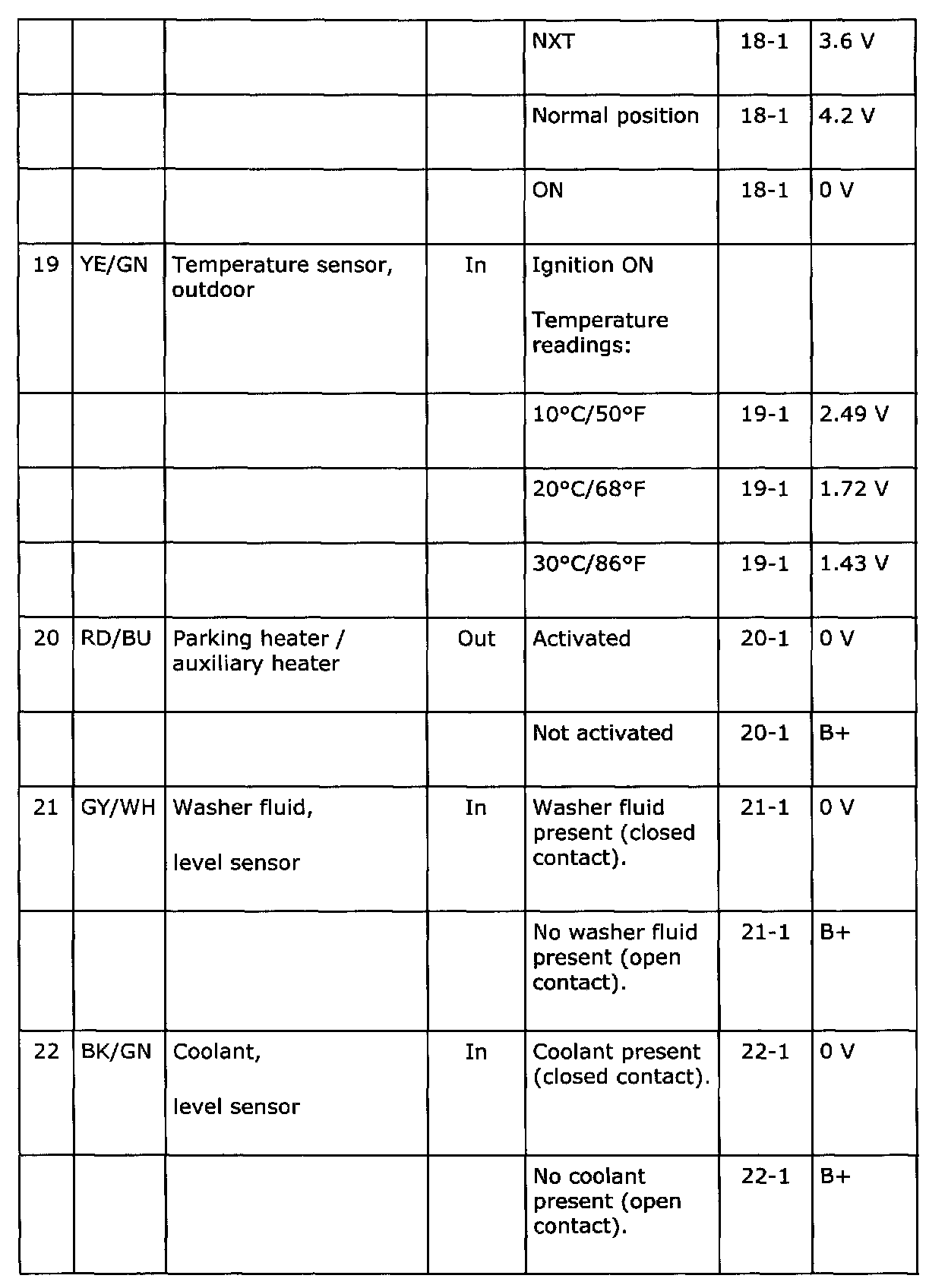 - If any reading is not OK, consult the wiring diagram to trace the leads, connectors or components which should be checked more thoroughly.
