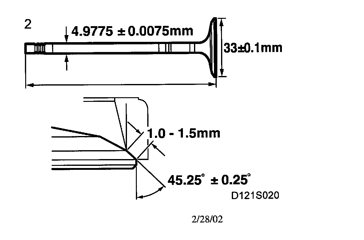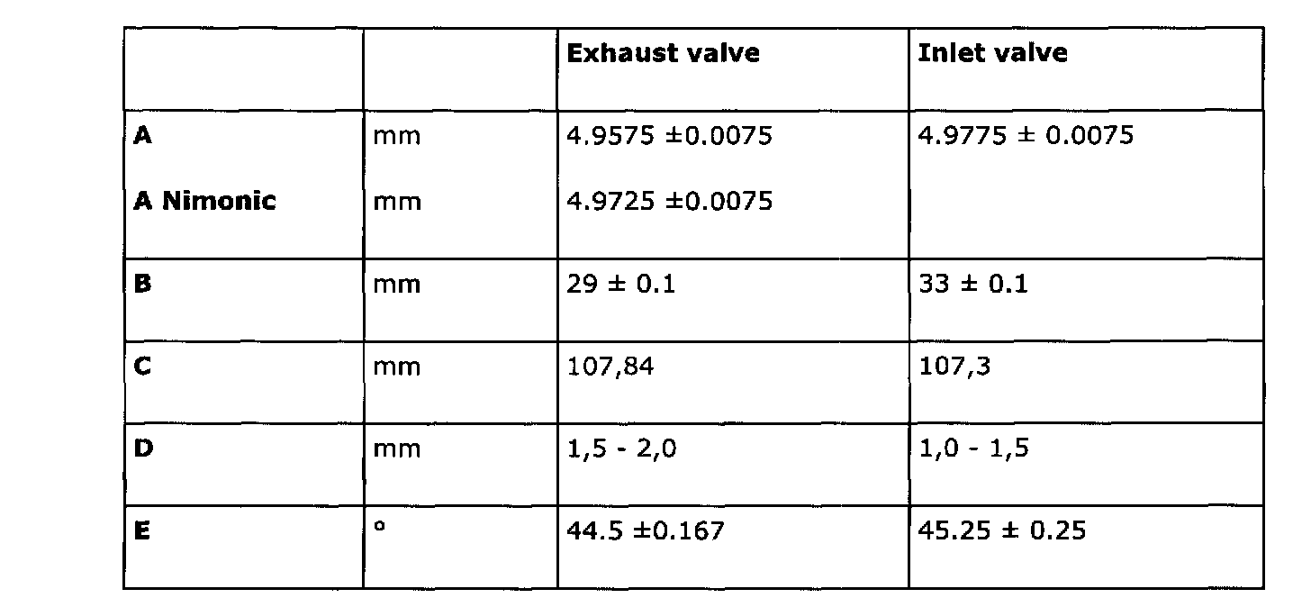 Important: The exhaust valves are stellite coated and must therefore not be machined. Grinding with paste only is advised. B235R and B205 R/L have Nimonic valves manufactured of a high-temperature resistant material.