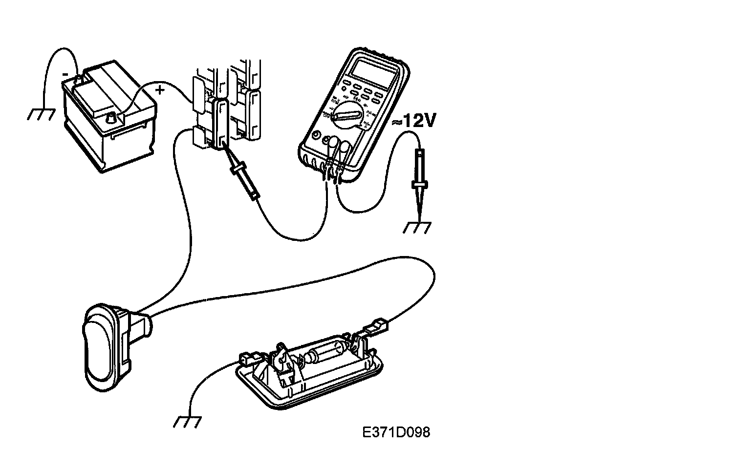 2. Set the multimeter to voltage measurement and connect the minus cable to a reliable grounding point.