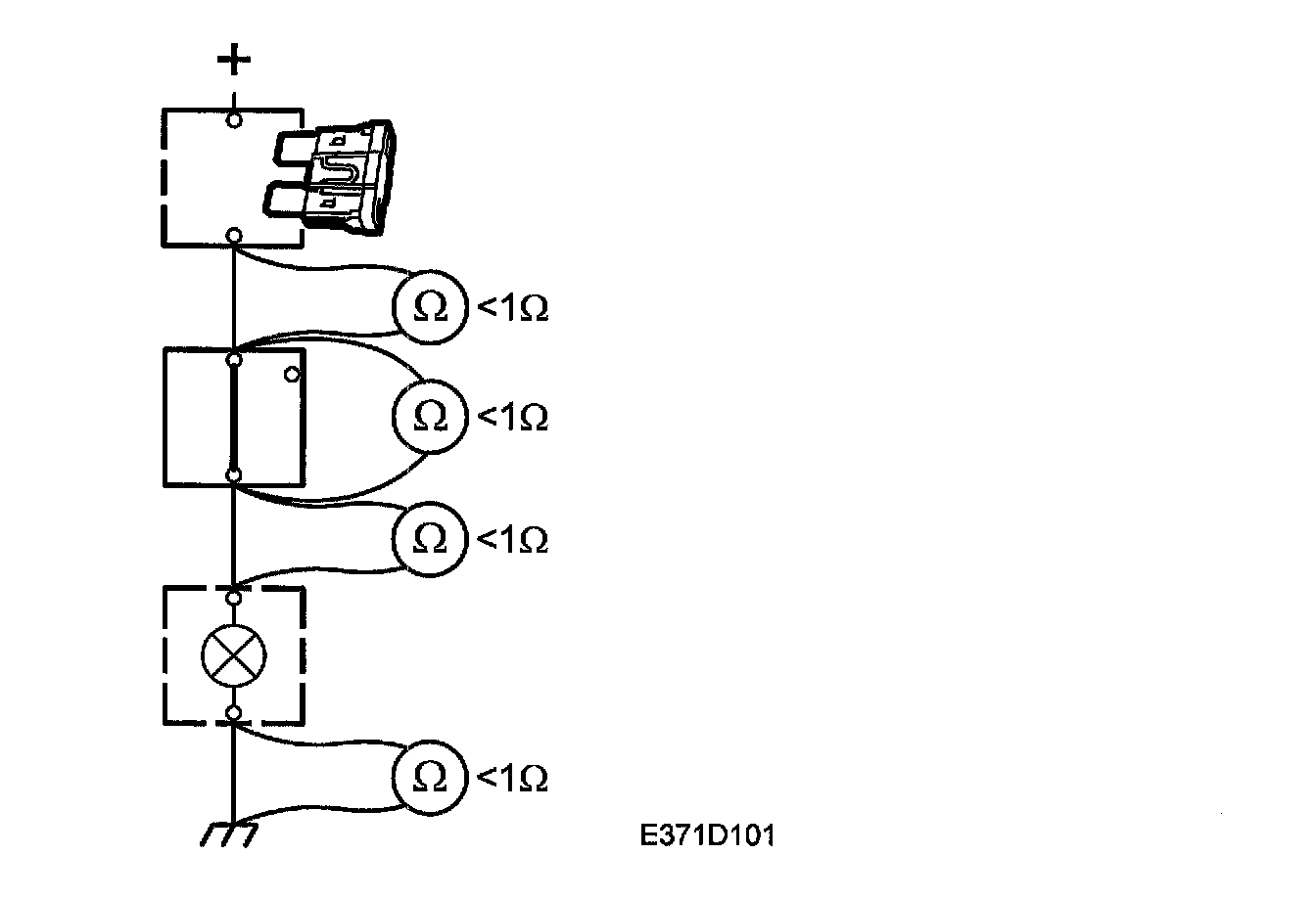 An ohmmeter must not be used for testing components containing semi-conductors, e.g. control modules and time delay relays, etc.