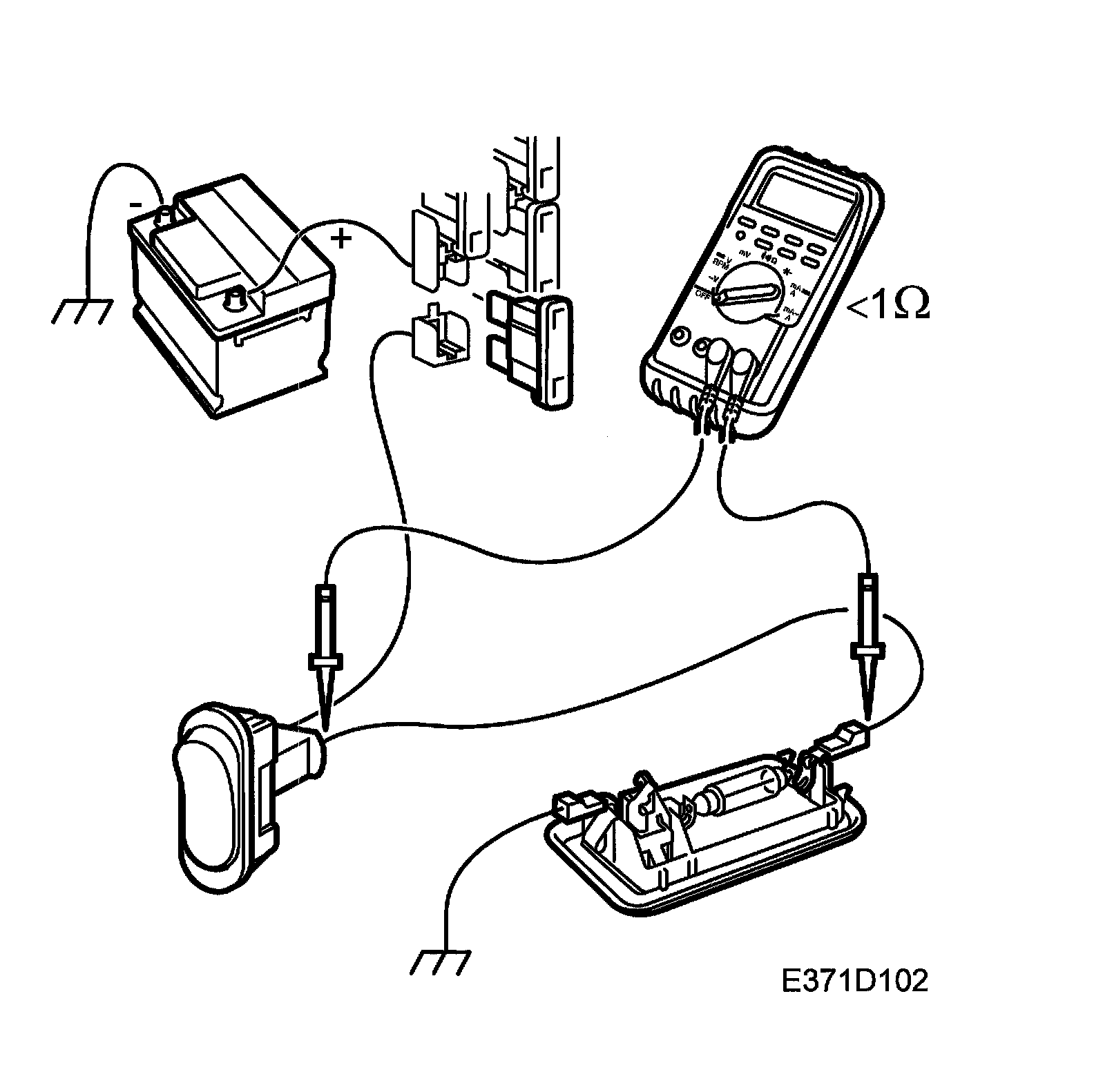 2. Set the multimeter to ohm measurement and connect the instrument to each end of the component/lead to be checked.