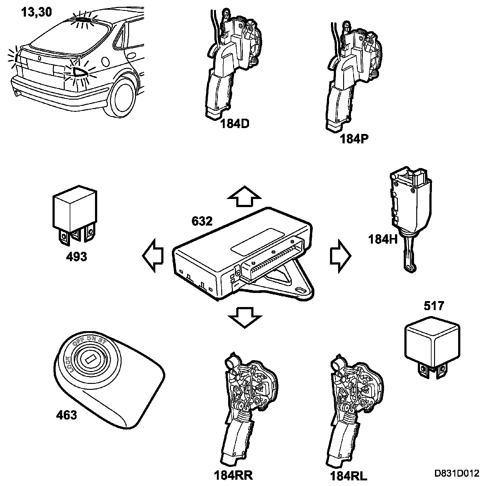 - Motor, central locking system, right rear door (184RR)