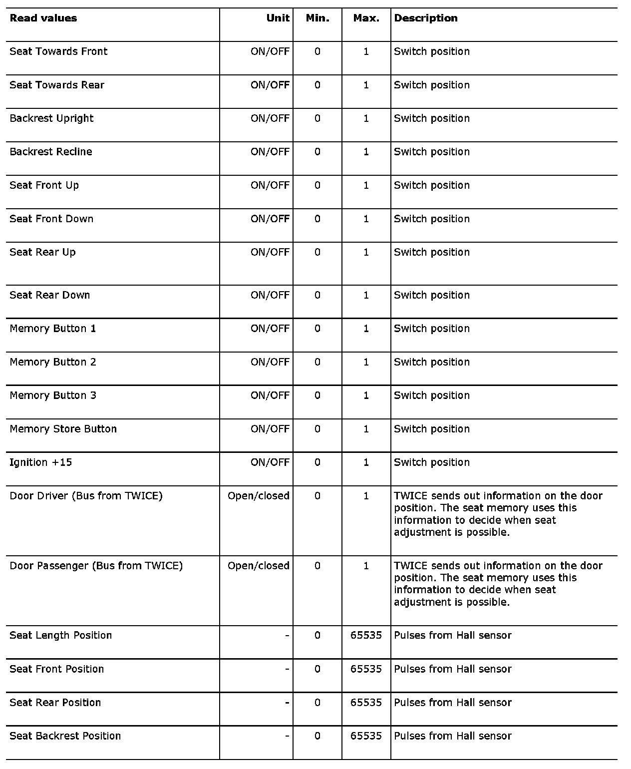 Menu, Read Values