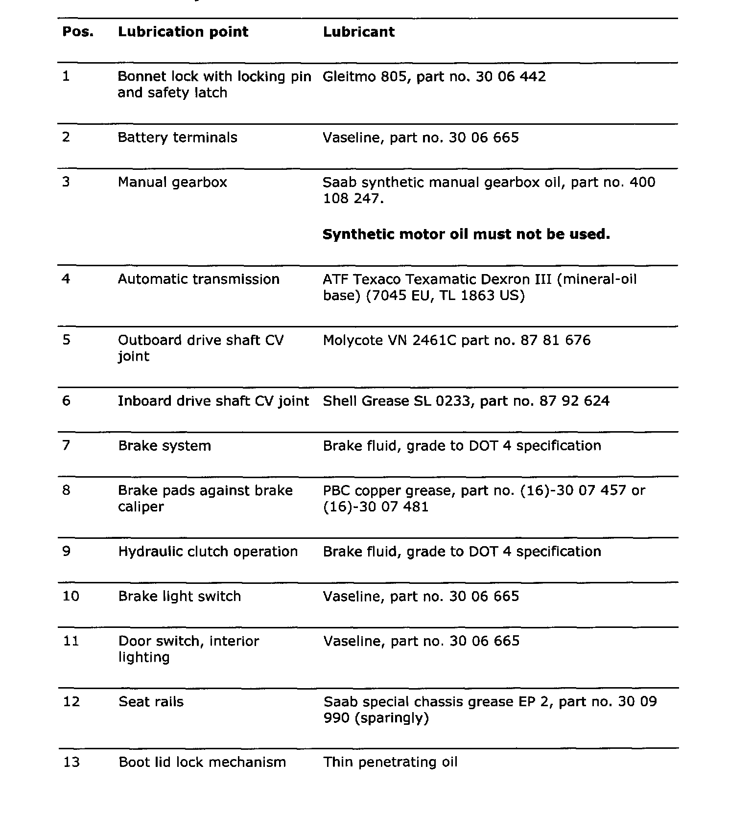 Chart Of Lubricants (Part 1 Of 2):