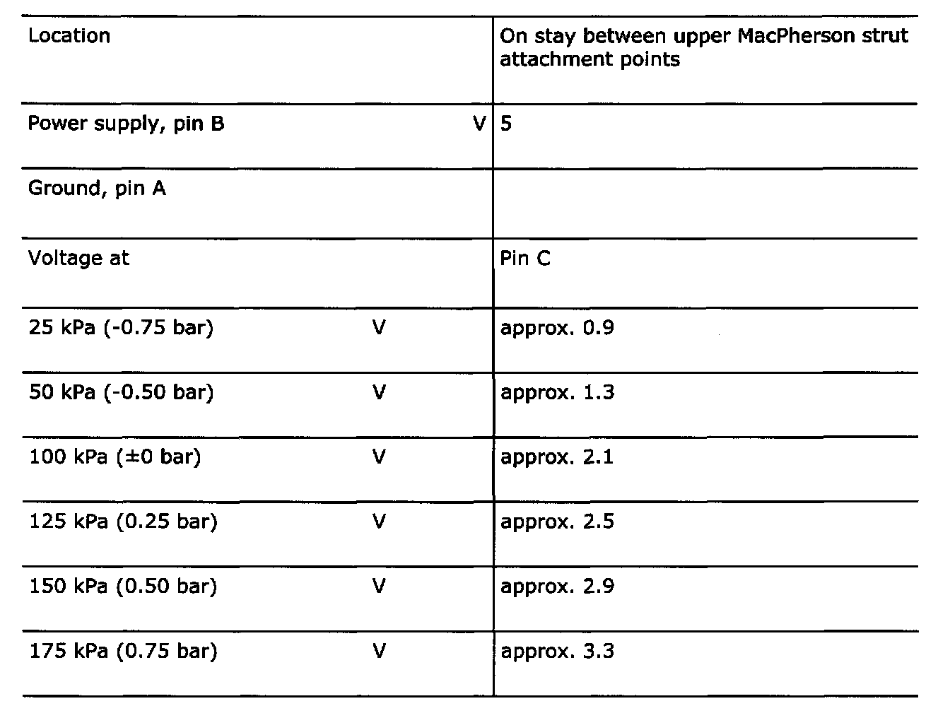 When checking the pressure sensor with a pressure/vacuum pump, slightly lower voltages may be obtained at high altitudes.